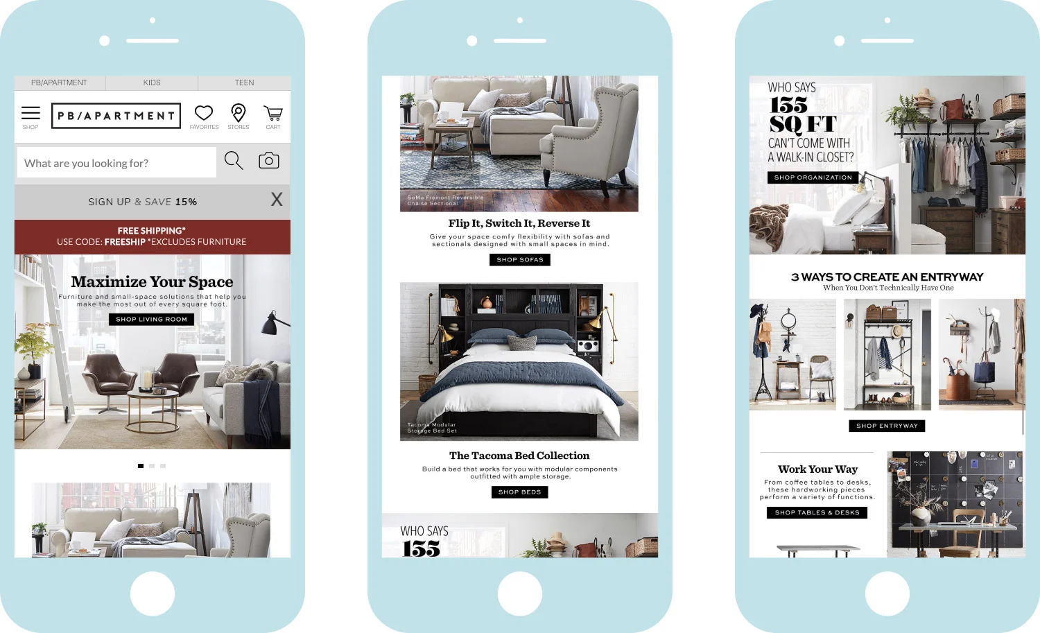 Hypothesis: PB/apt can make your living space on-trend and functional at great price and value. Marketing messaging will help convey this story and a responsive mobile site (live text with more white space) will make shopping on-the-go easier for the millennial consumer who is shopping on mobile devices.